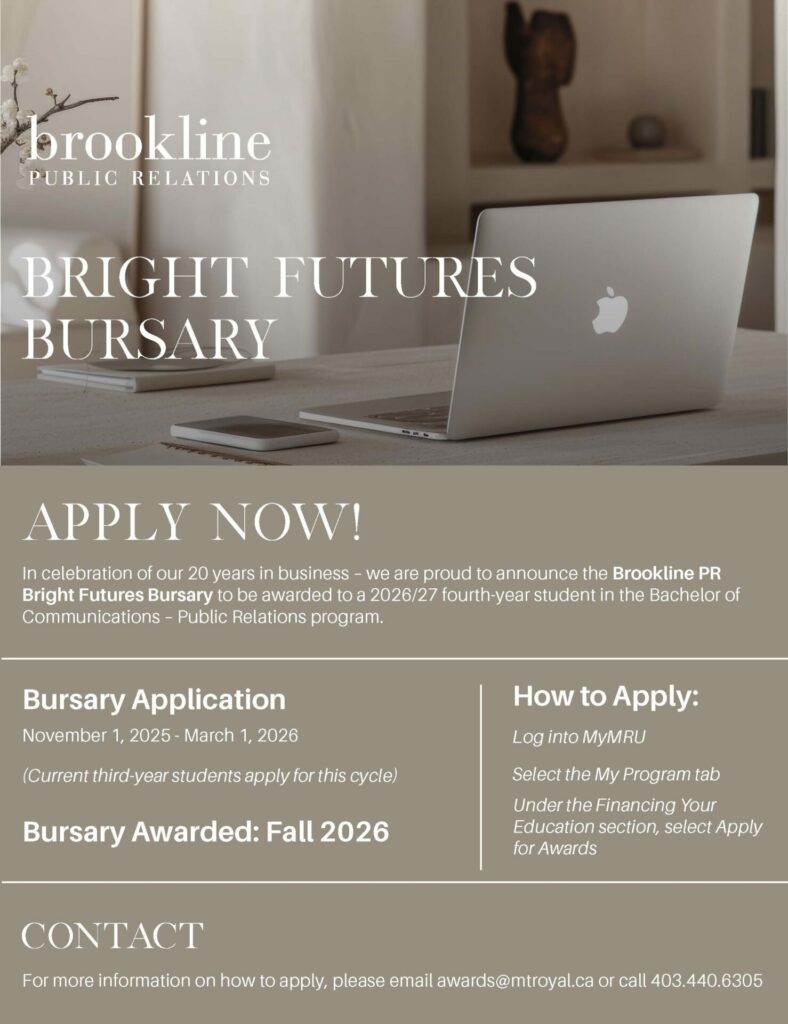 As many of you might already be aware, Brookline is currently celebrating its 20th anniversary – BOO YAH! Two decades of bold ideas, big moments and the best team in the biz. To celebrate this momentous achievement, Brookline is excited to announce the inaugural Brookline PR Bright Futures Bursary through Mount Royal University (MRU).